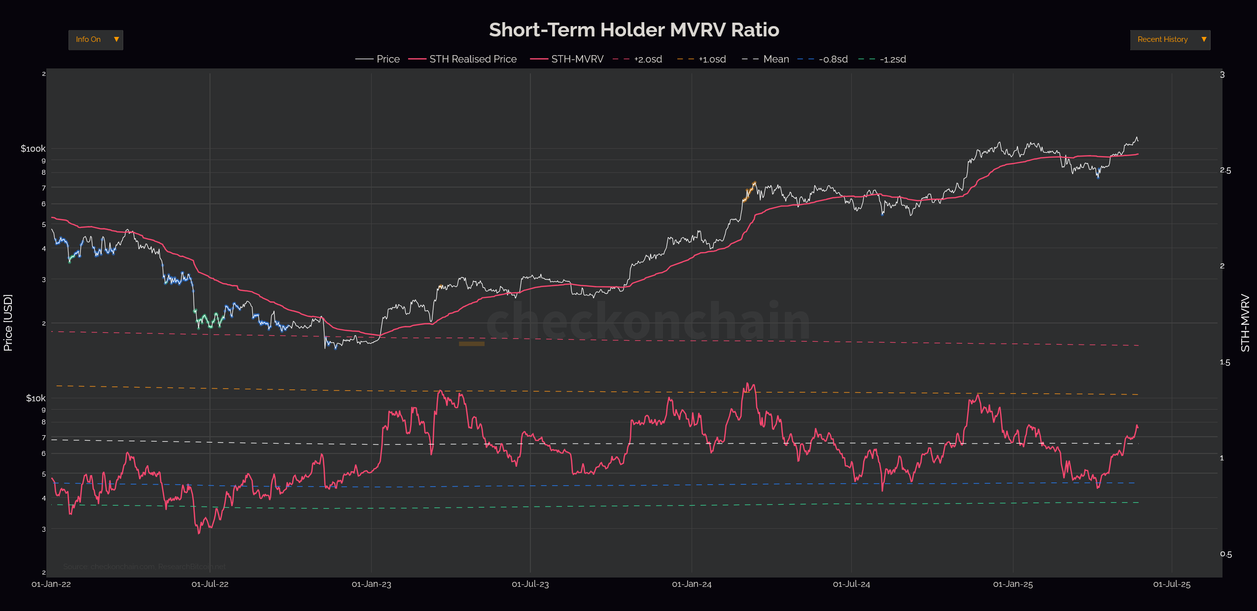 This chart of the Short-Term Holder MVRV Ratio (STH-MVRV) reveals a critical dynamic: even after Bitcoin’s recent price surges, there’s likely room left to run and network effects could be the accelerator.